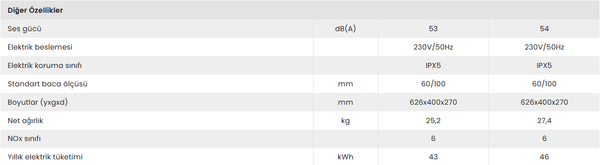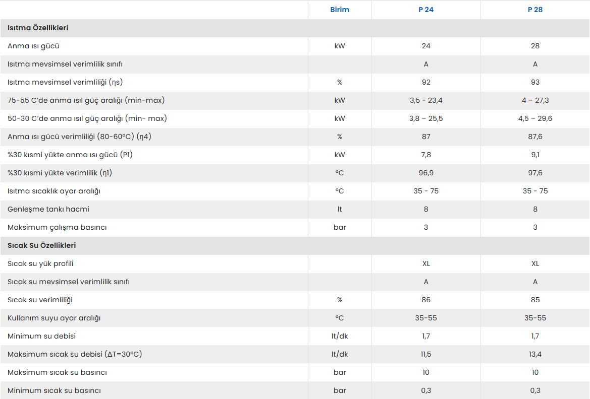 24 ve 28 kW kapasite seçenekleri